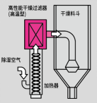 (4)除濕干燥機(jī)的空氣管路都采用密閉循環(huán)系統(tǒng),并裝有過濾器,因此不受外界氣候影響以及可以防止粉塵在廠內(nèi)造成污染,改善工作環(huán)境。